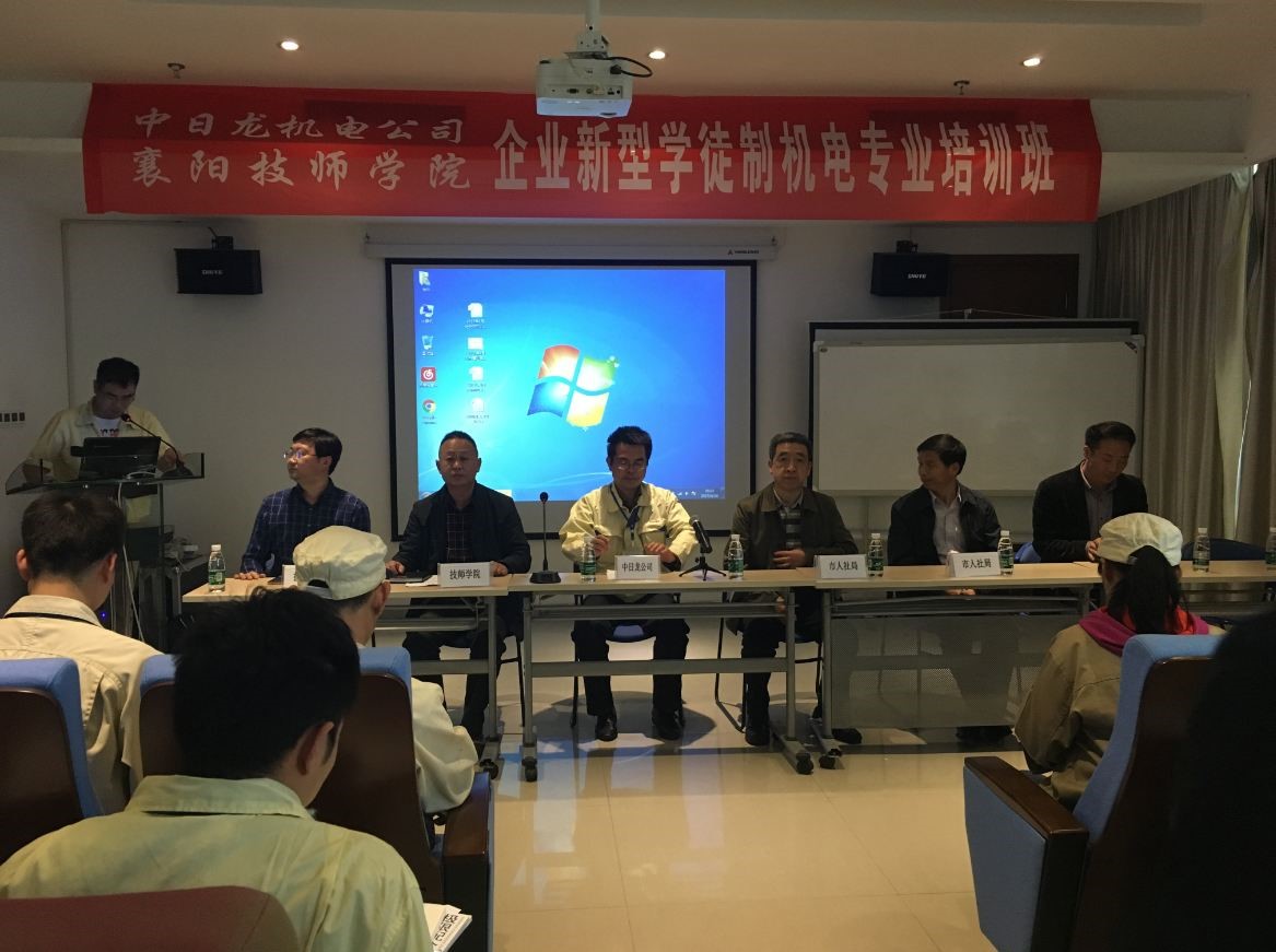 4月26日,由我司和襄陽(yáng)技師學(xué)院聯(lián)合組織的機(jī)電一體化專業(yè)企業(yè)新型學(xué)徒制試點(diǎn)培訓(xùn)班正式開班。這標(biāo)志著襄陽(yáng)市2017年企業(yè)新型學(xué)徒制試點(diǎn)工作正式啟動(dòng)。市人社局副局長(zhǎng)宋明志、職業(yè)能力建設(shè)科科長(zhǎng)耿元斌、市職業(yè)