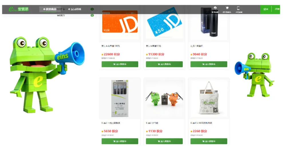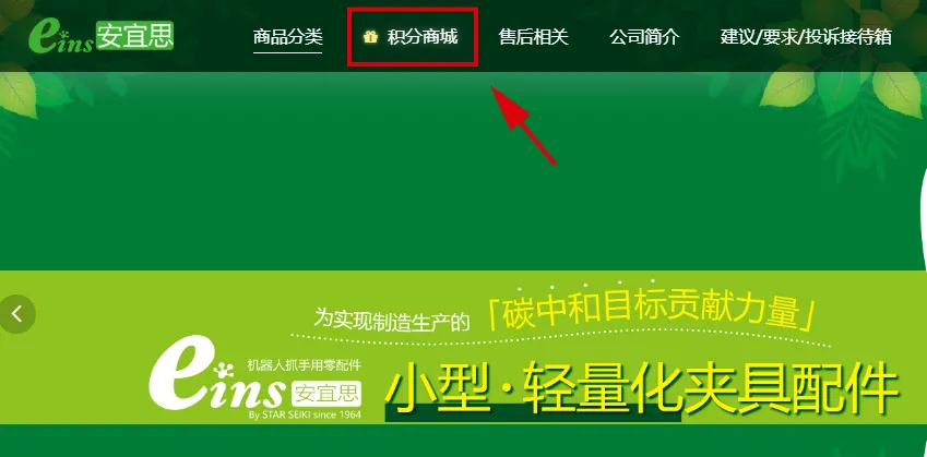 點擊eins商城網(wǎng)站上方導航欄“積分商城”